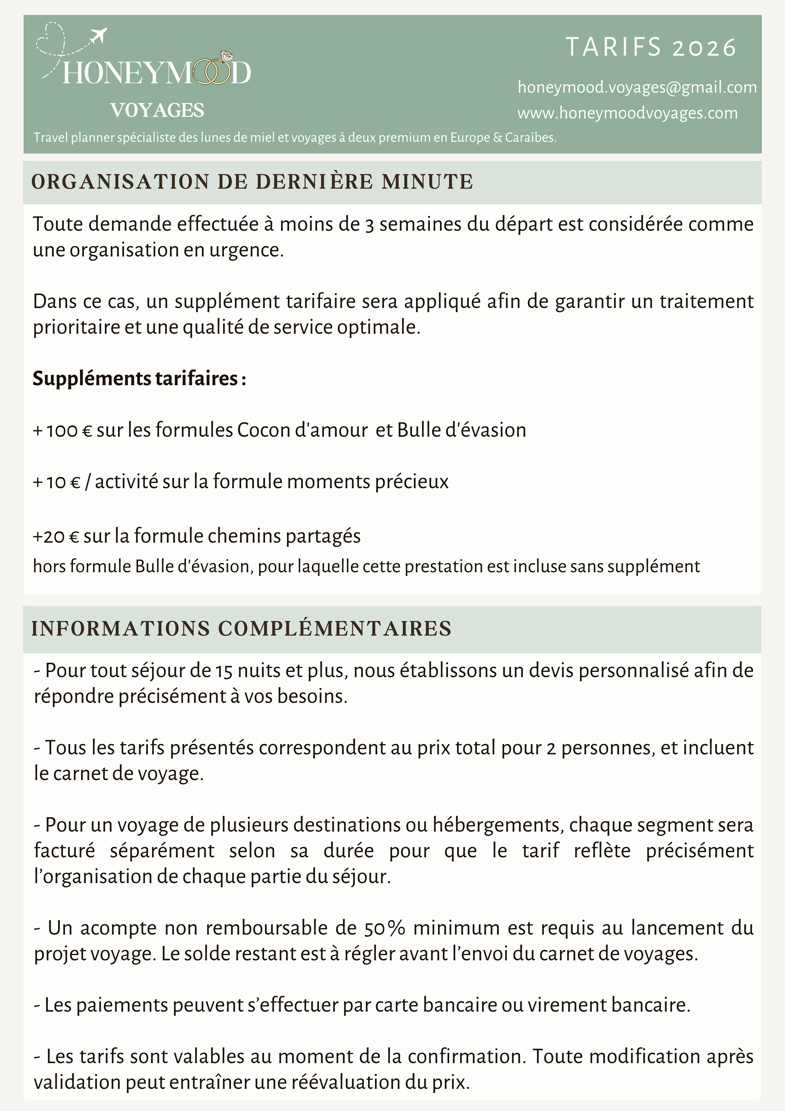Nos Tarifs